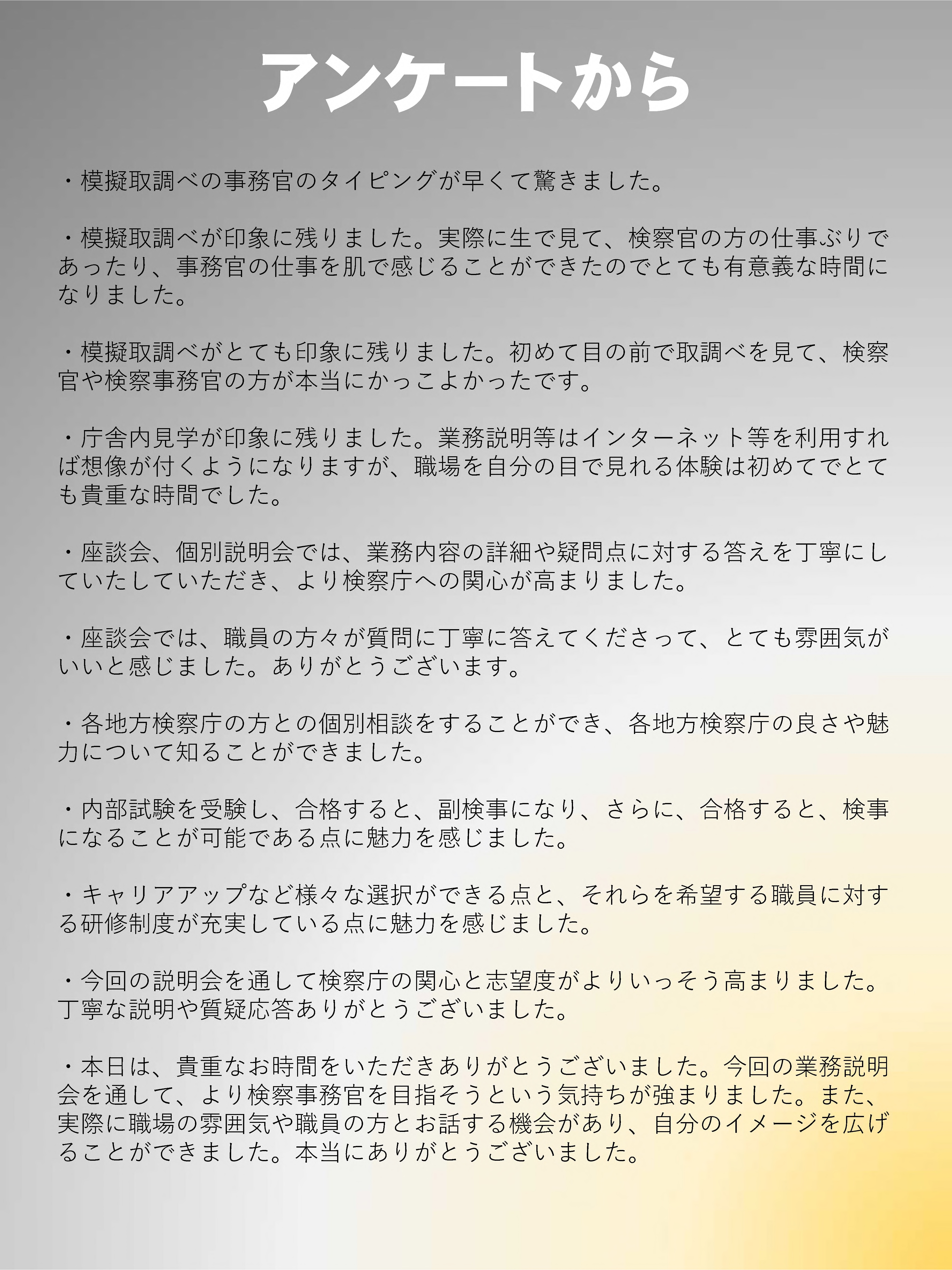 検察庁の職務や魅力を少しでもお伝えできていれば幸いです。