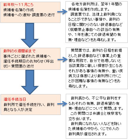 裁判員が選ばれるまでの手続きの流れは下の図のとおりです。