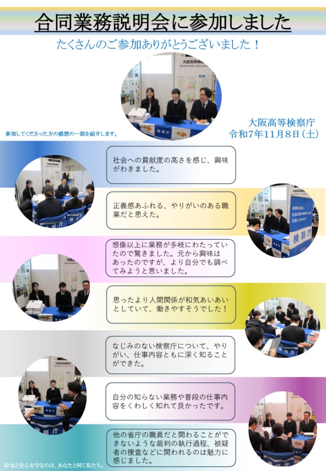 11月8日に実施された民間企業も多数出展する合同業務説明会に、大阪高等検察庁ブースとして出展しました!