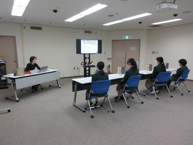 ■実施内容:業務説明、業務体験(事件記録受理体験、証拠品受理体験)、職員との座談会など