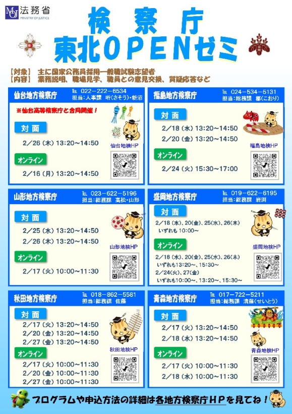 東北6県の地方検察庁において、主に国家公務員採用一般職試験志望者を対象とした「東北OPENゼミ」を開催します。