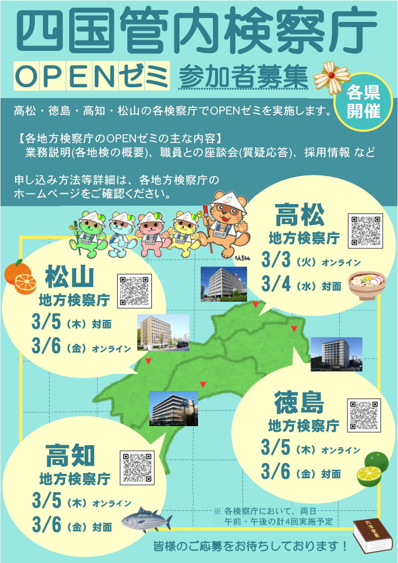 四国各県の検察庁において、OPENゼミを実施しますので、お知らせします。