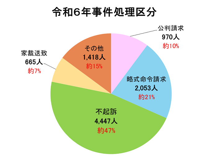 また、約7%を家庭裁判所送致(少年事件)しています。