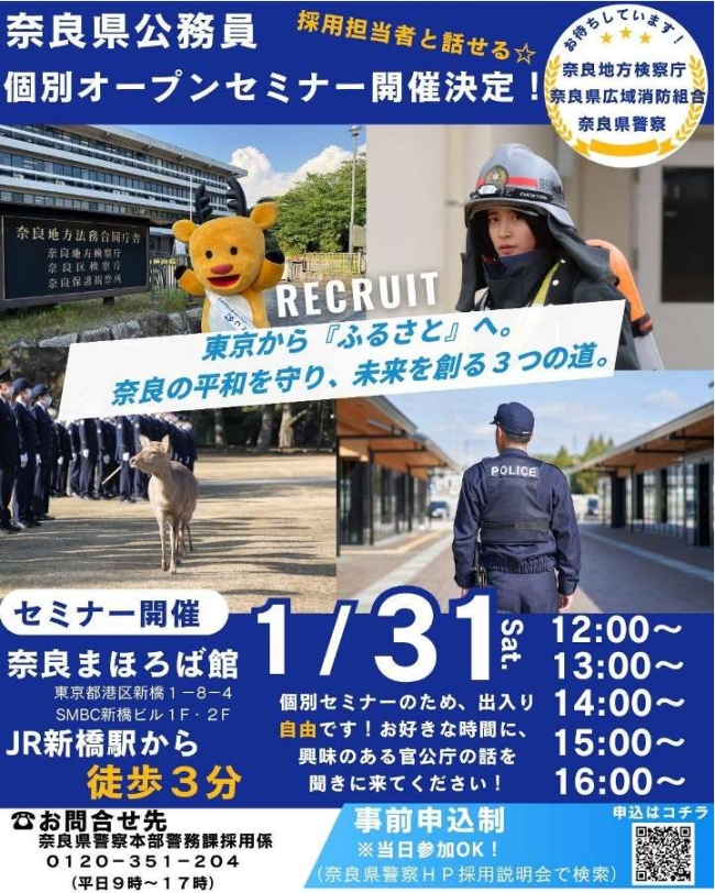 ば館」において、奈良県警本部及び奈良県広域消防組合と合同による業務説明会を開催い