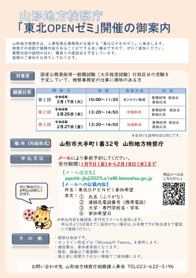 「山形地方検察庁「東北OPENゼミ」開催の御案内」を印刷される場合は、以下のリンクをクリックしてください。